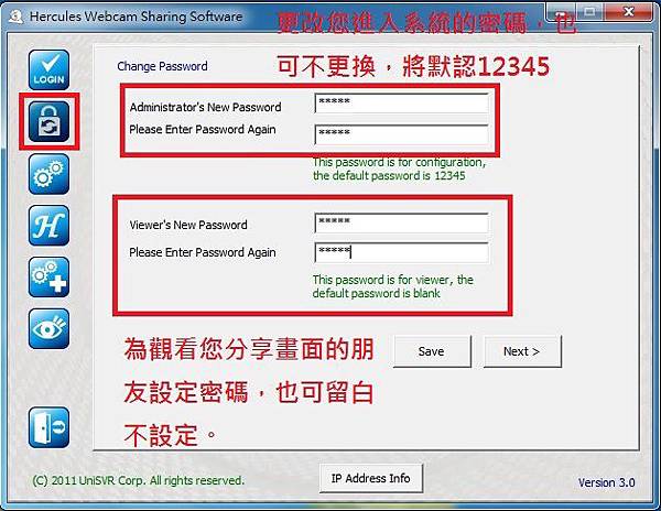 3.3 您可以在此更改您進入系統的密碼(也就是3.1時,log in的密碼);