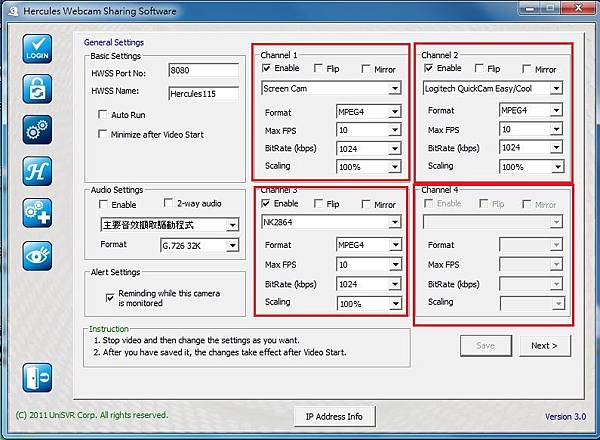 HWSS可以一次把4支Webcam變成HermesDDS設備~就能一次監看四畫面了!